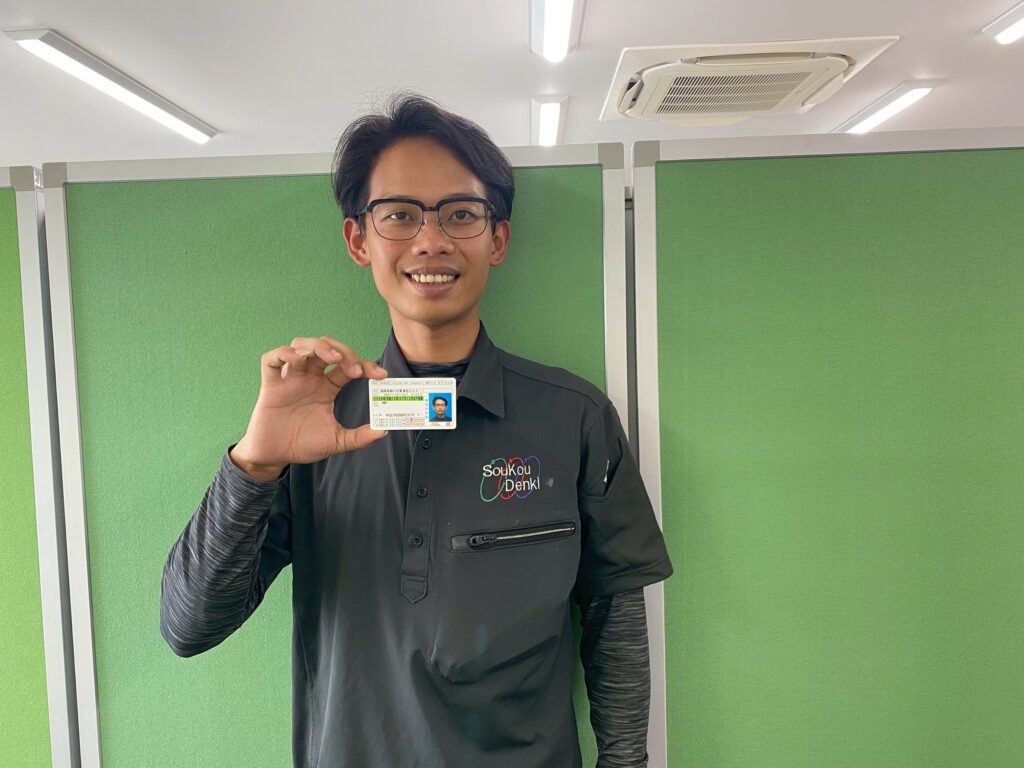 弊社技能実習生のDさんは、慣れない日本での生活と仕事を両立しながら、見事に第二種電気工事士の国家資格に合格しました! これで、一般住宅などの電気工事を単独で担当できます。
